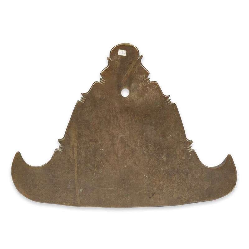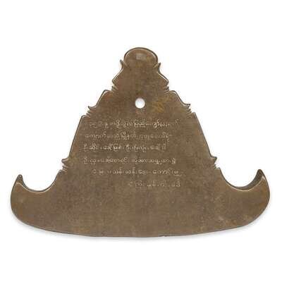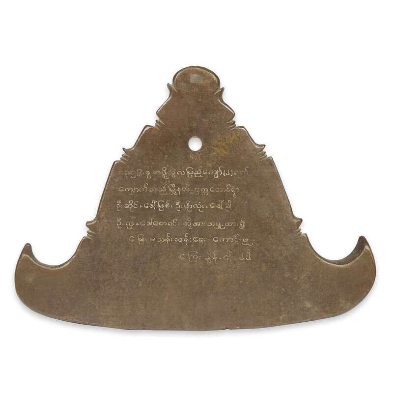 A Burmese inscribed bronze triangular temple bell, Kyizi, Pakkoku district circa 1950