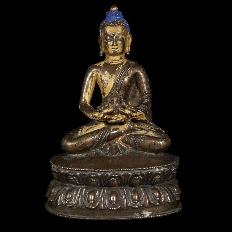 A Tibetan copper alloy figure of Buddha 15th/16th century or earlier