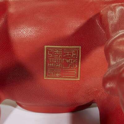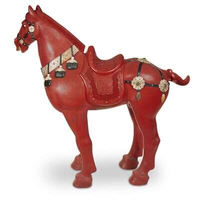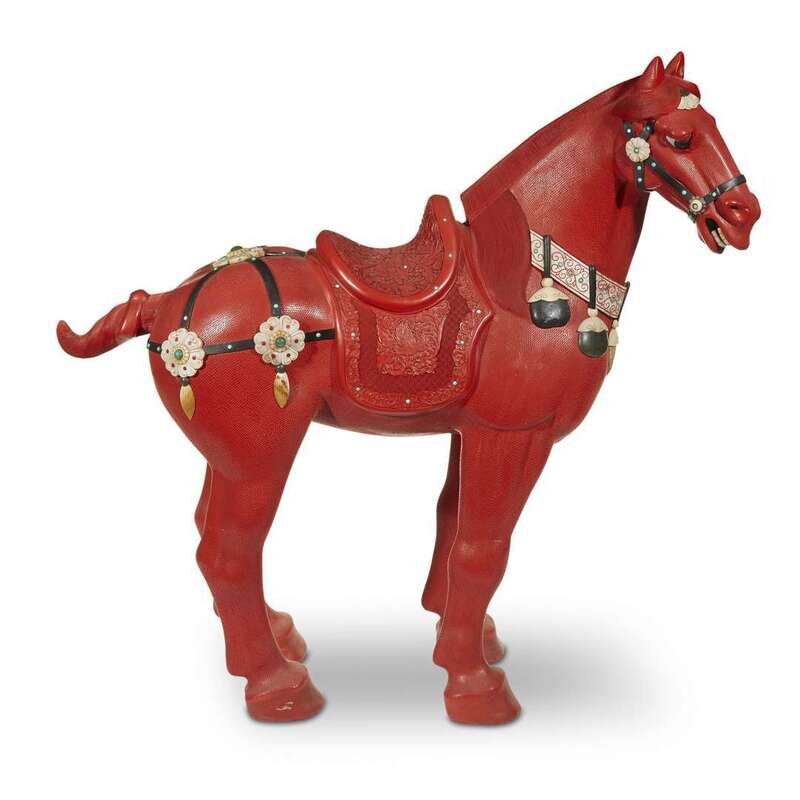 A large Chinese carved and embellished cinnabar lacquer horse