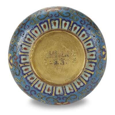 A small Chinese cloisonné water coupe qianlong six-character mark, and possibly of the period
