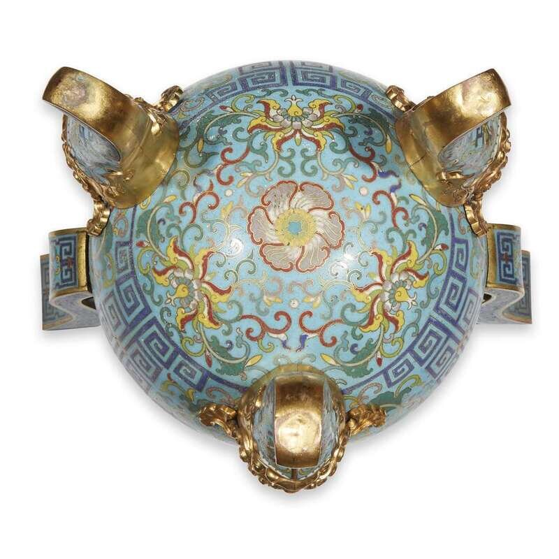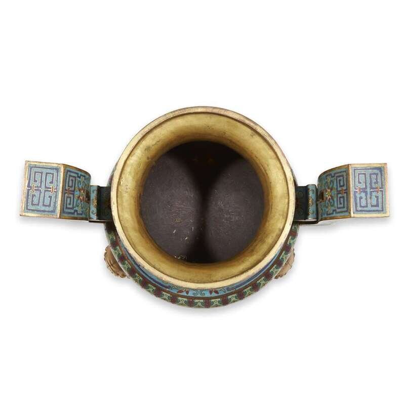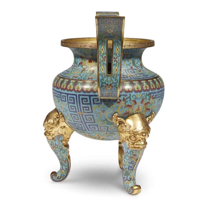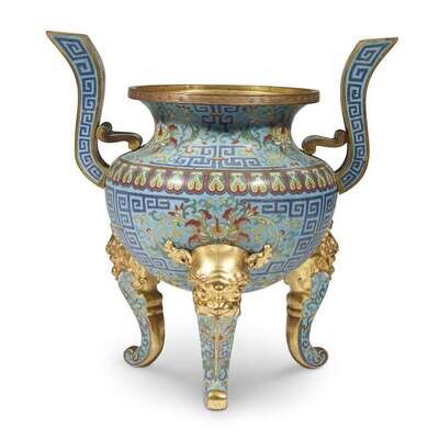 A Chinese cloisonné and parcel-gilt tripod censor qing dynasty, 19th century or earlier