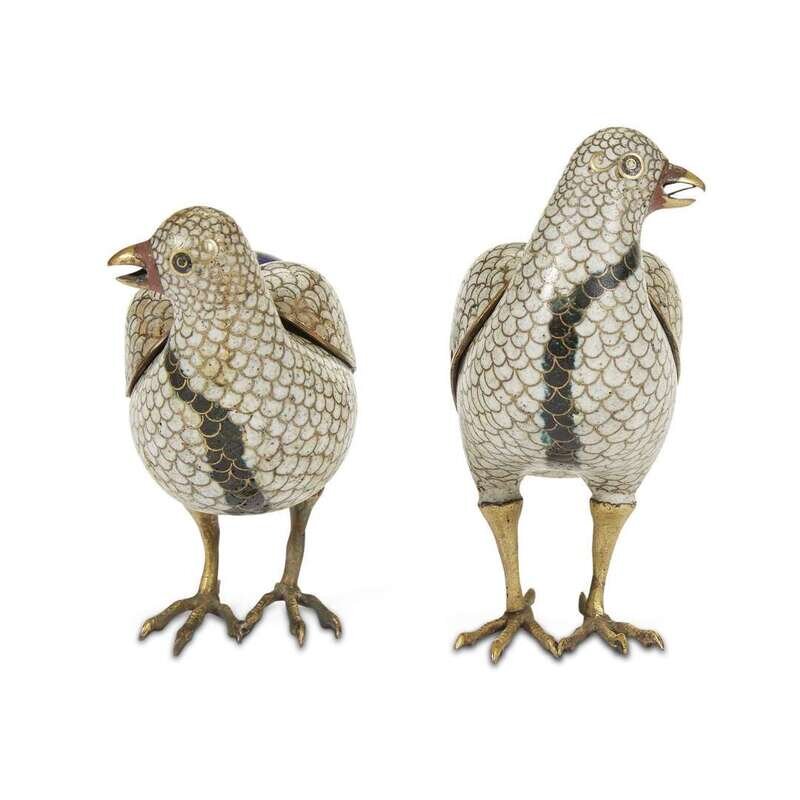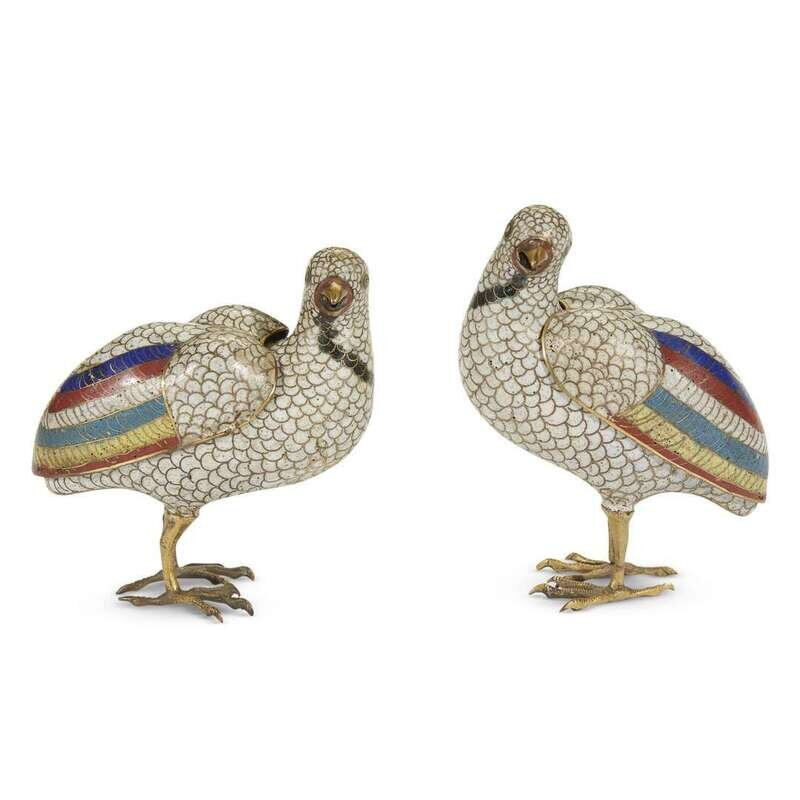 Pair of Chinese cloisonné quail-form censers and covers qing dynasty