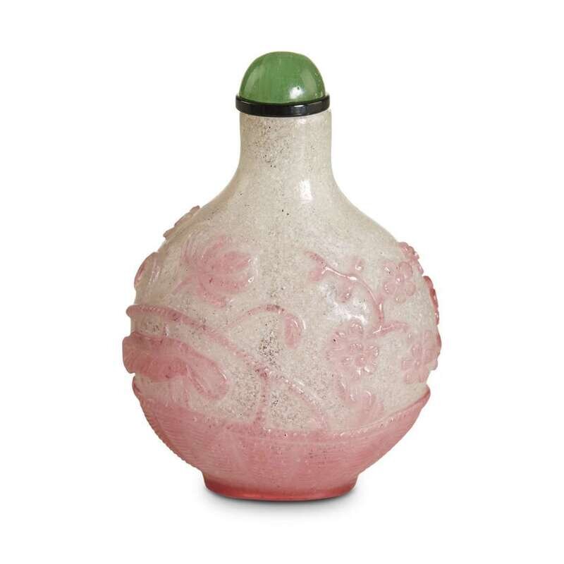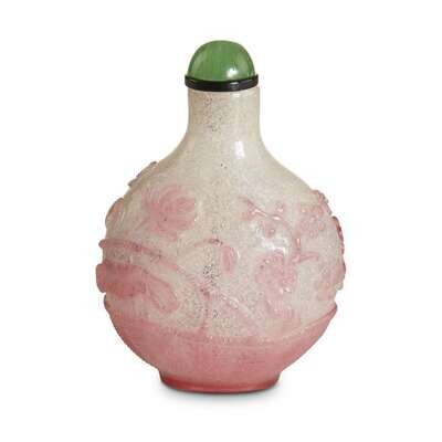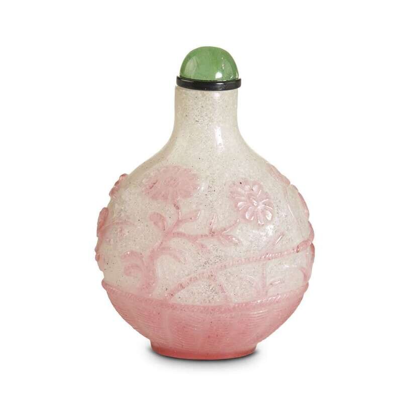 A Chinese pink overlay "snowflake" glass "Basket of Flowers" snuff bottle 19th century