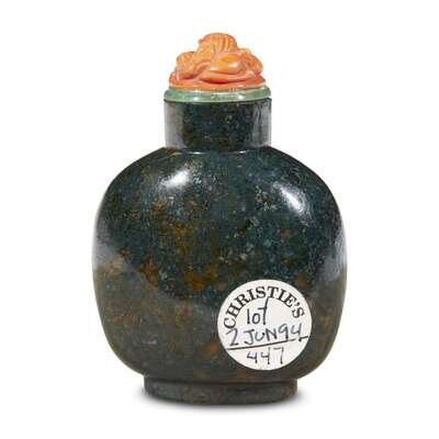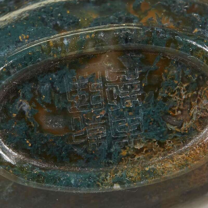 A Chinese moss agate snuff bottle incised qianlong four-character mark to underside
