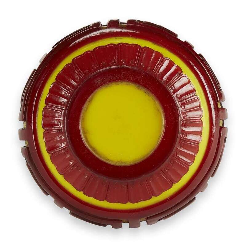 Finely carved, the upper lobe depicting butterflies and melons, middle and lower levels with stylized borders.