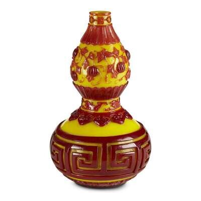 A Chinese yellow ground red-overlay glass double-gourd vase