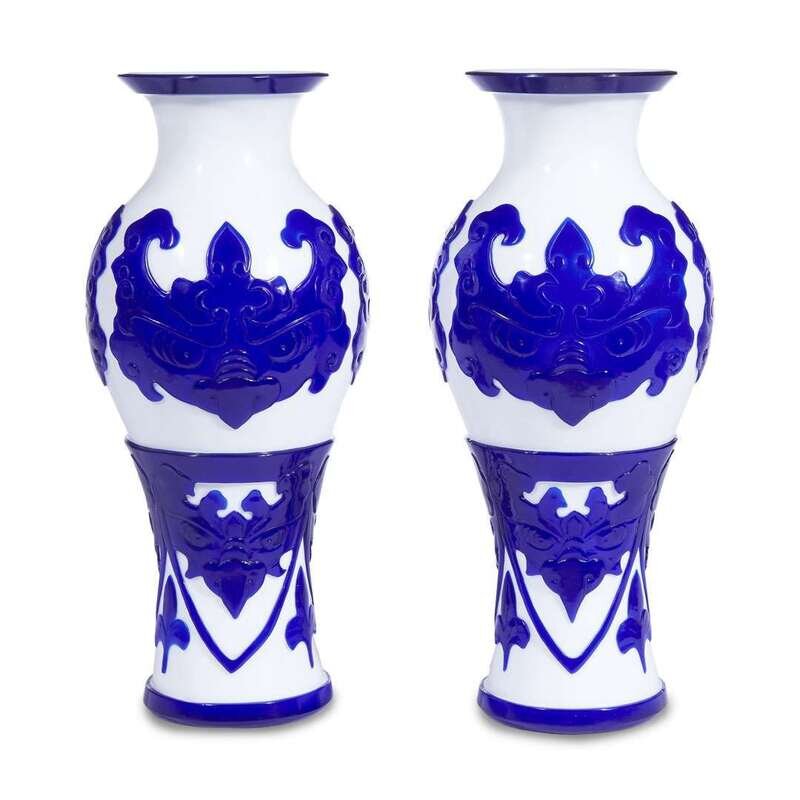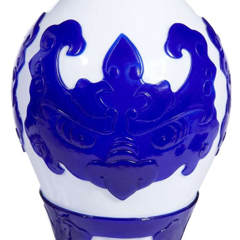 Pair of Chinese cobalt blue-overlaid white glass vases