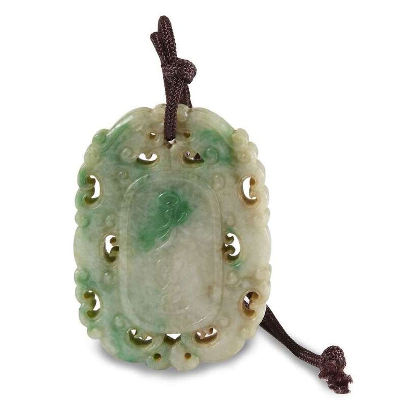 A Chinese carved and pierced jadeite pendant