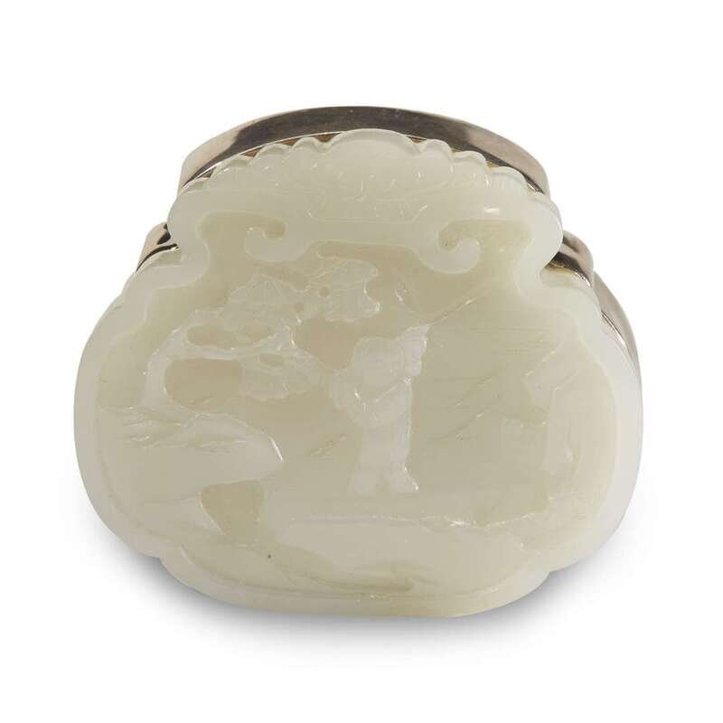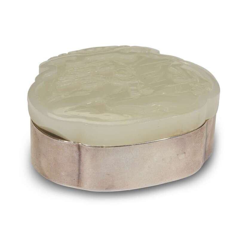 A Chinese carved white jade and Tiffany & Co. sterling silver covered box