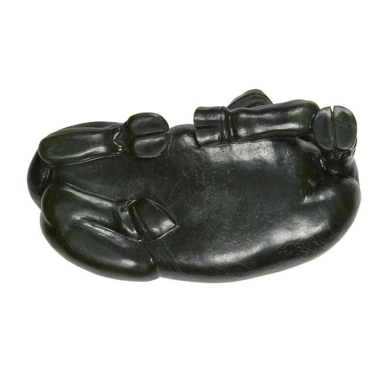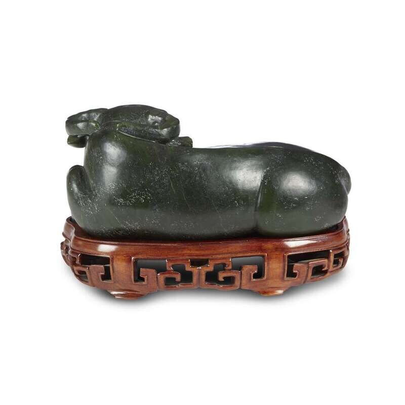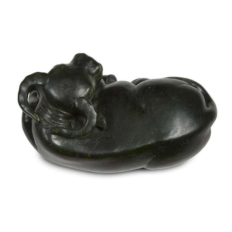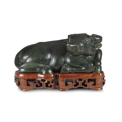 Chinese carved spinach jade figure of a recumbant buffalo