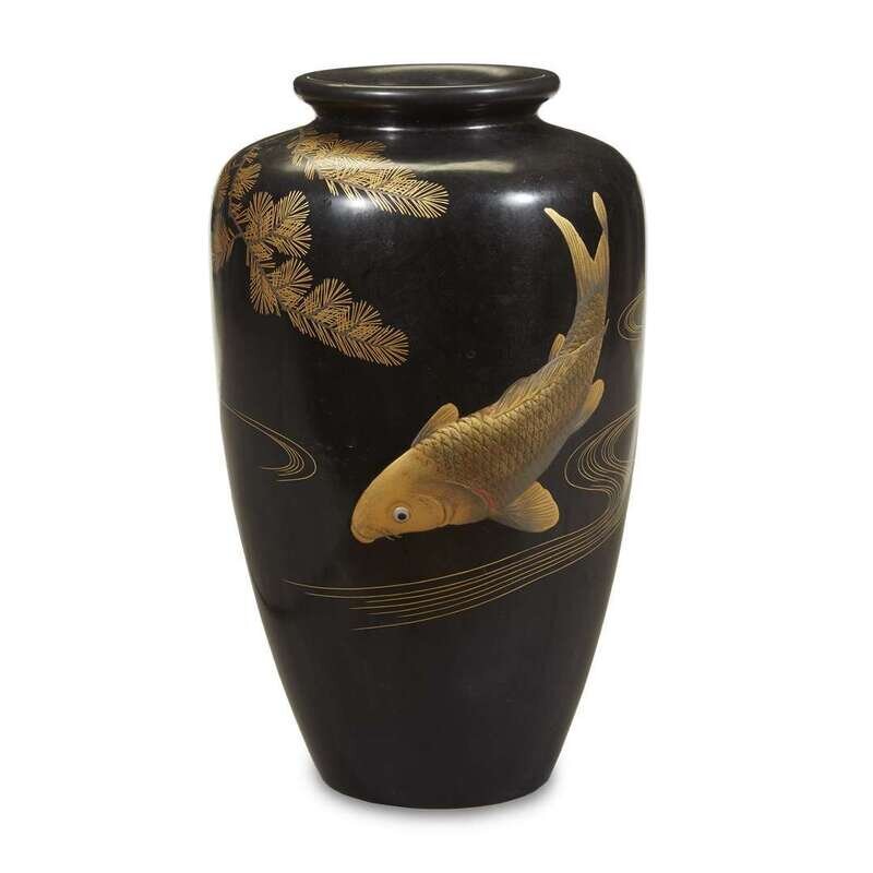 Japanese lacquer "Koi and Pine" vase