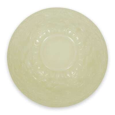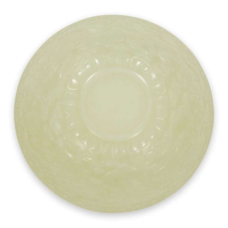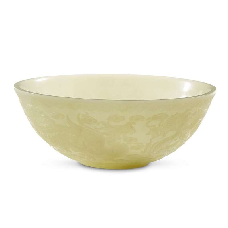 A Chinese creamy-white carved jade "Dragons and Phoenix" bowl