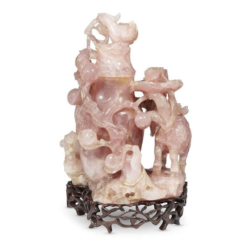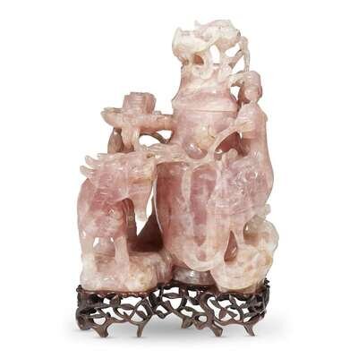 A large Chinese carved rose quartz "Kylin and Phoenix" vase and cover qing dynasty