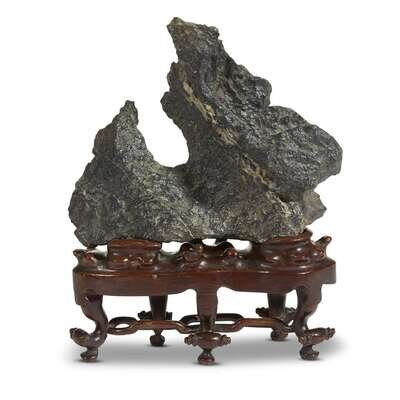 Approx. H: (including stand): 9 1/2 in., 24cm ; L. (stone) 7 3/4 in., 19.5cm
