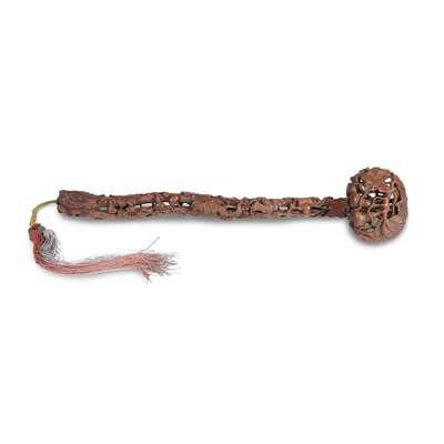 Carved in elaborate openwork, the end with a knotted silk tassel.