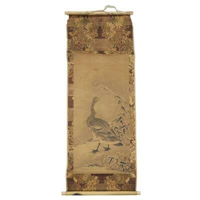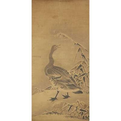 GOOSE AND MILLET Ink on paper with one seal to lower right, mounted as a hanging scroll.