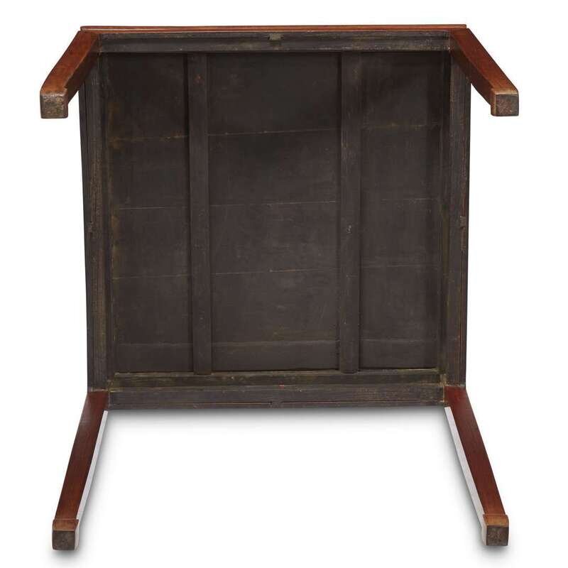 With recessed waist carved in relief, on square legs terminating in hoof feet.