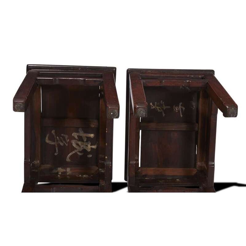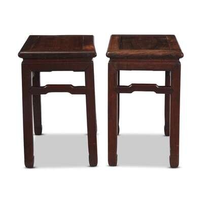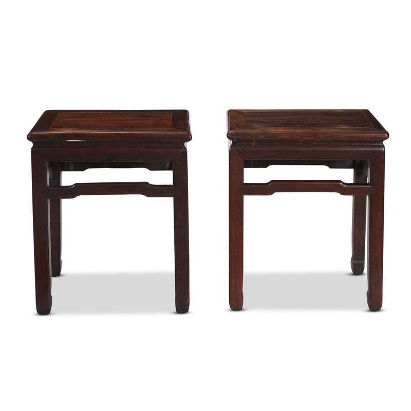 *A pair of Chinese "huanghuali" and mixed woods rectangular stools late 19th/early 20th century