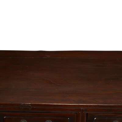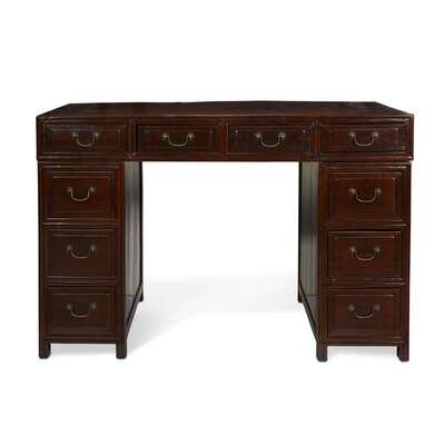 The rectangular top with four drawers on two pedestals, each with three drawers.