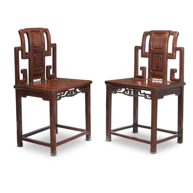 *A pair of Chinese hardwood, possibly "hongmu", side chairs 19th/20th century
