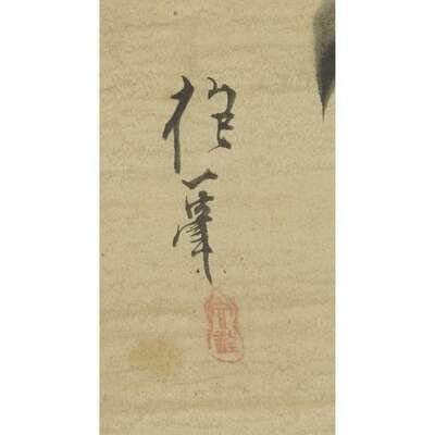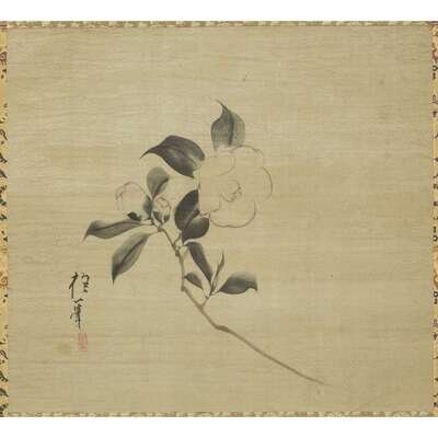 CAMELLIA BLOSSOM Ink and color on satin, inscribed and with one seal to lower left, mounted as a hanging scroll.