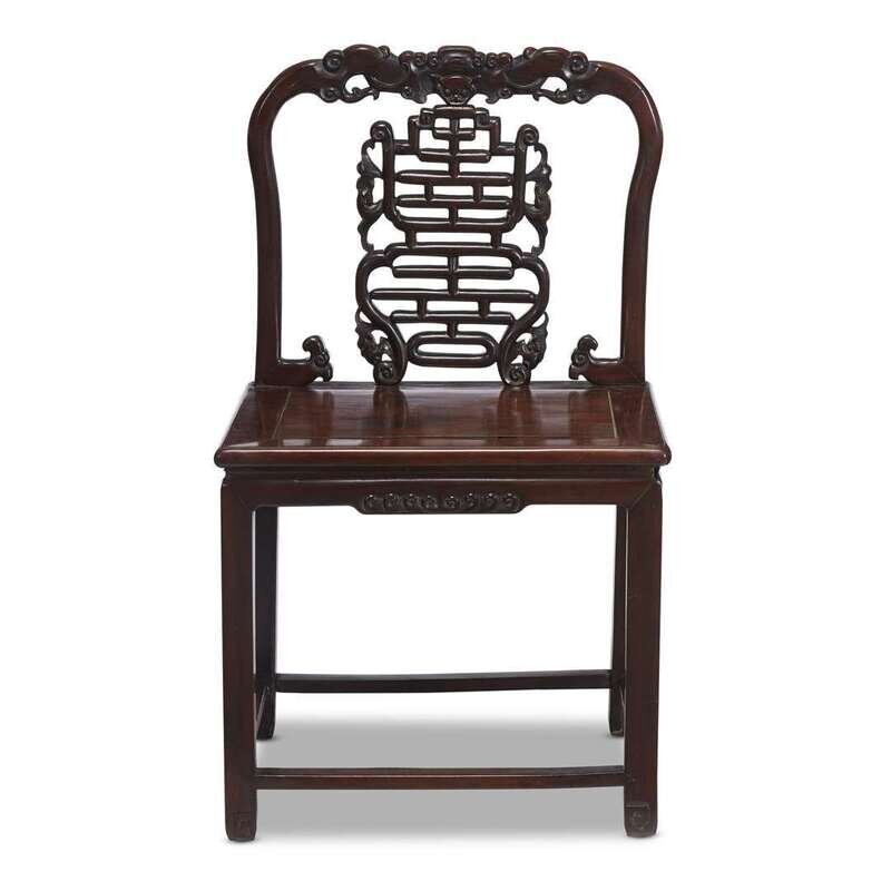 *A carved Chinese hardwood, possibly "hongmu", side chair late 19th/early 20th century