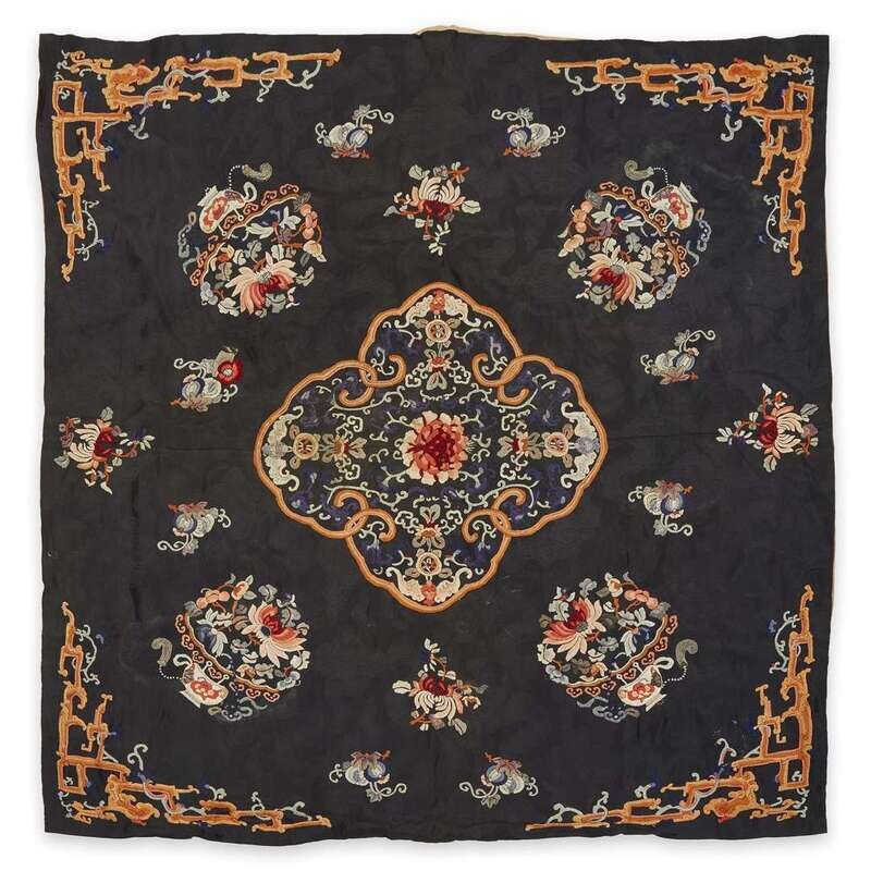 A Chinese embroidered black silk brocade panel late qing dynasty, 19th century