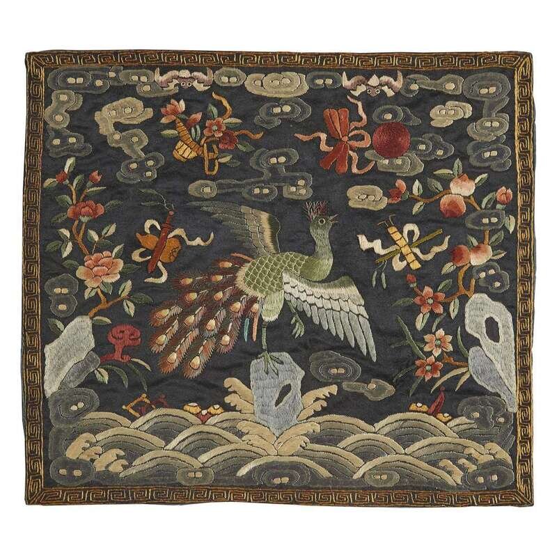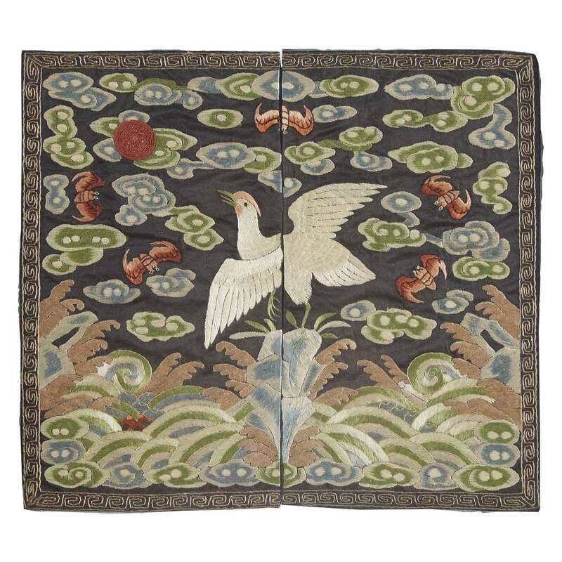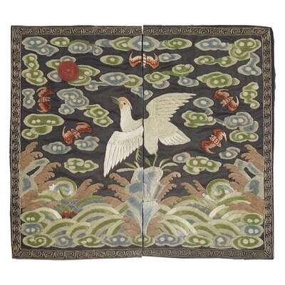 Two Chinese silk-embroidered Civil rank badges qing dynsaty, late 19th/early 20th century
