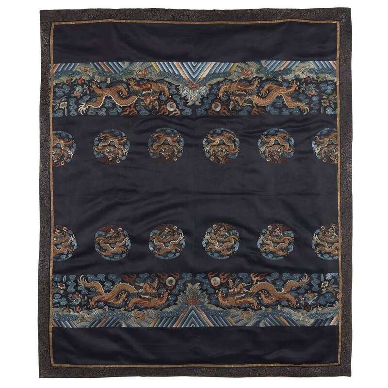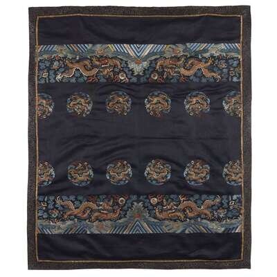A Chinese embroidered silk "Dragon" robe fragment