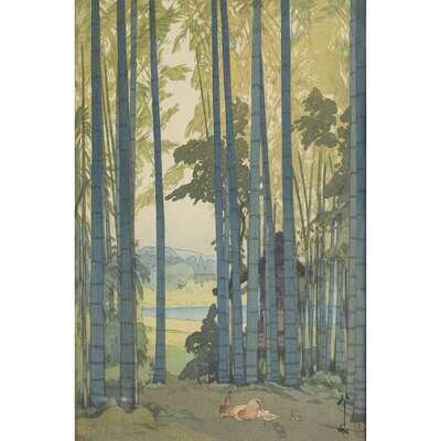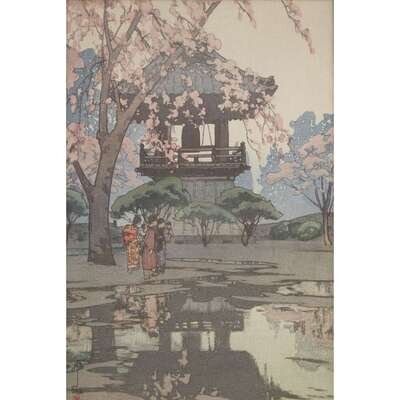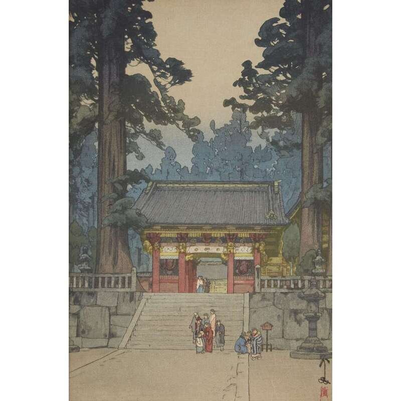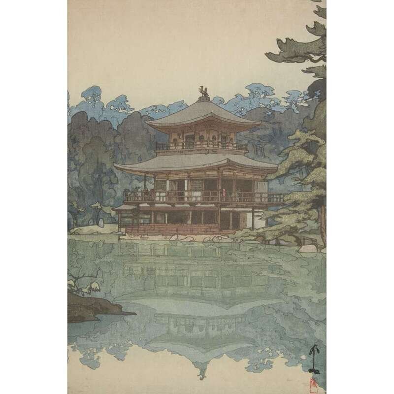 FOUR COLOR WOODBLOCK PRINTS comprising: IN A TEMPLE YARD, BAMBOO WOOD, KINKAKU, TOSHOGU SHRINE, all pencil signed and with seal, framed, matted and glazed.