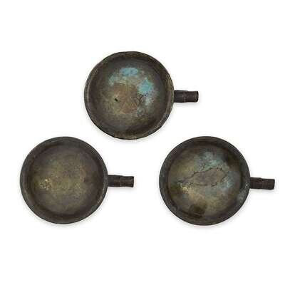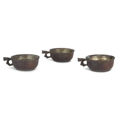 Three Chinese metal-lined carved hardwood wine cups possibly 17th/18th century