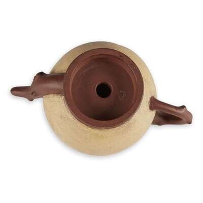 With twig-form spout and handle, yellow and reddish-brown body.