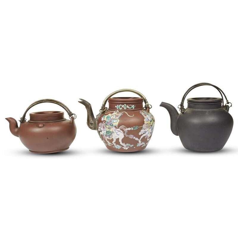 A group of three larger Chinese Yixing teapots 19th/20th century