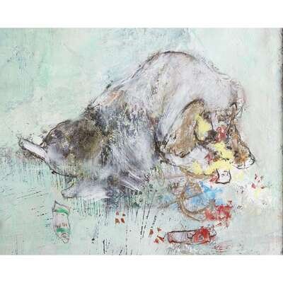 DOUBT THE FEAR Oil on canvas, signed lower right, inscribed in Japanese verso, framed.