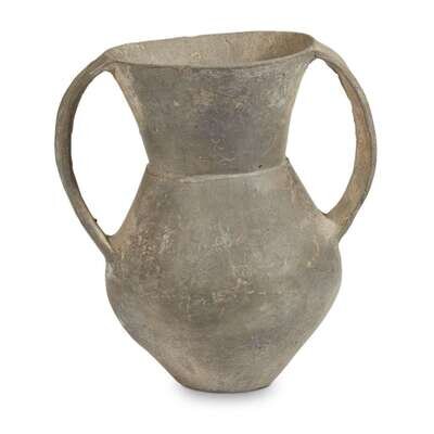 Finely potted, with ovoid body, high tapered mouth, curved flat handles.