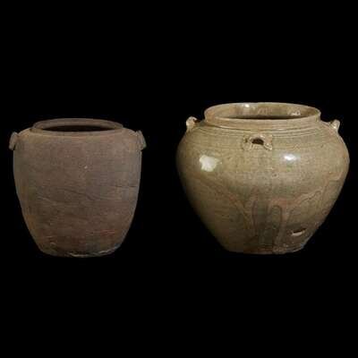 Two Chinese stoneware small jars warring states 5th-3rd century B.C., western jin 3rd-4th century