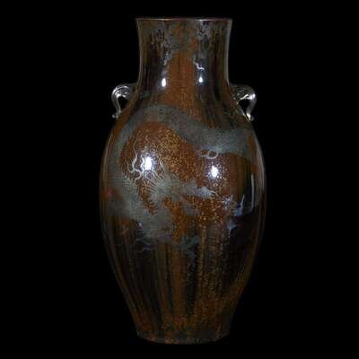 A Japanese silver deposit-decorated studio pottery "Dragon" vase taisho period, 20th century