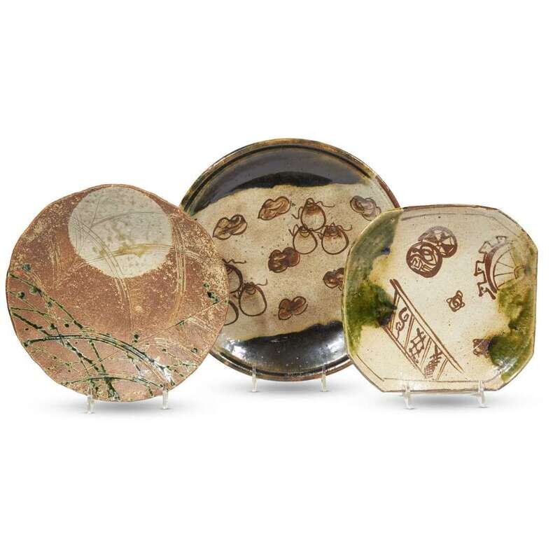 Three Japanese stoneware dishes One possibly 17th/18th century, the other two 19th/20th century