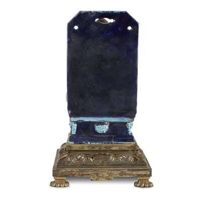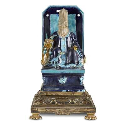 A sancai-glazed porcelain figure of Shoulao with deer and crane, later gilt metal stand in the manner of Oscar Bach ming dynasty