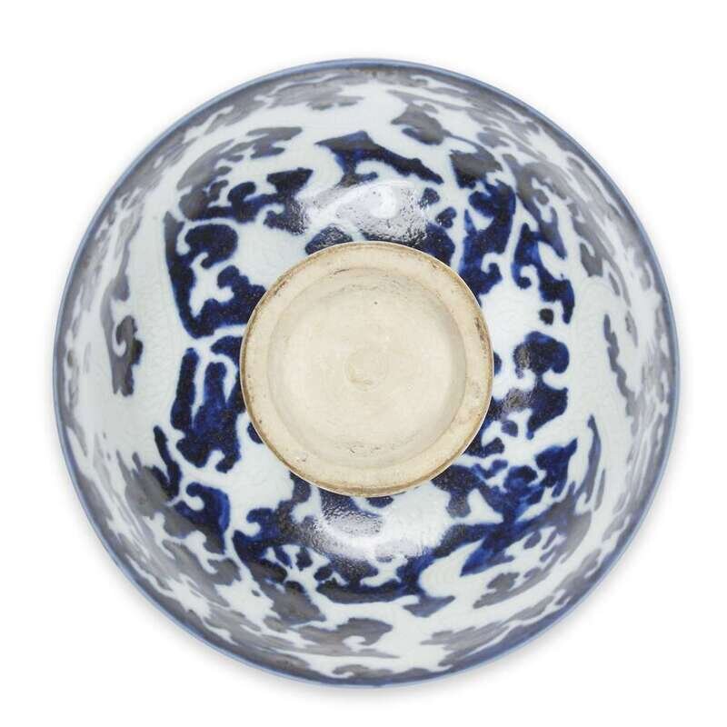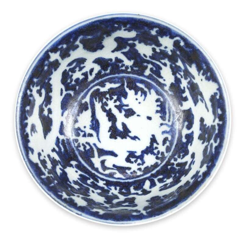 Depicting five incised dragons amongst the clouds inside, two additional dragons on the exterior.