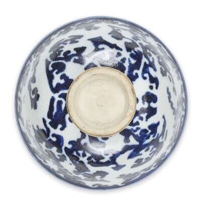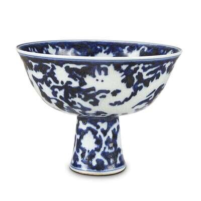 A Ming style blue and white "Dragon" stem cup