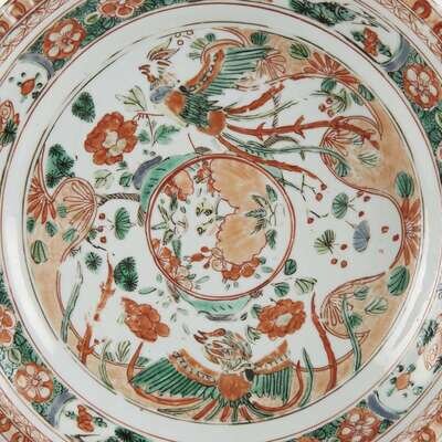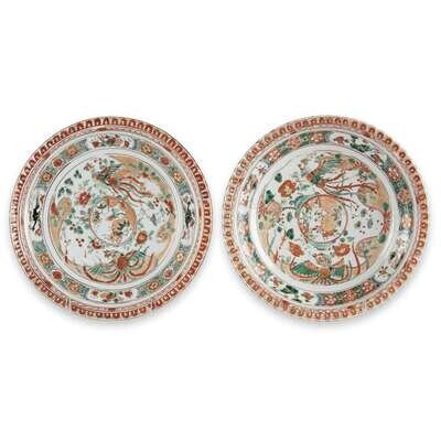 A pair of Chinese famille verte-decorated porcelain dishes kangxi period