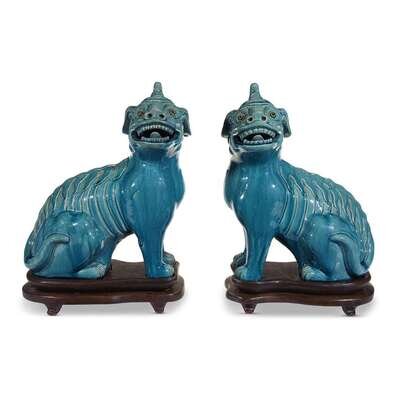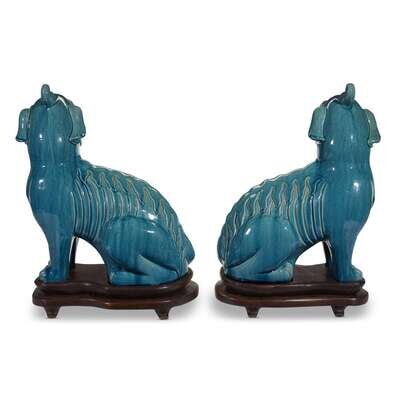 A pair of Chinese turquoise-glazed pottery luduan qing dynasty