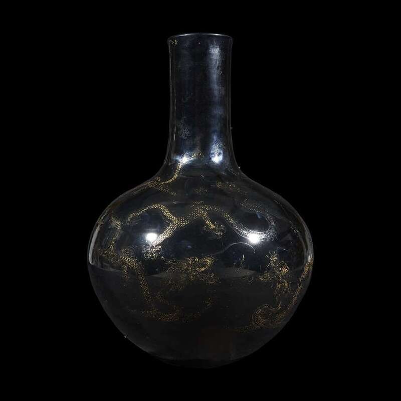 A large Chinese "Mirror Black"-glazed "Dragon" vase qing dynasty, 18th century or later