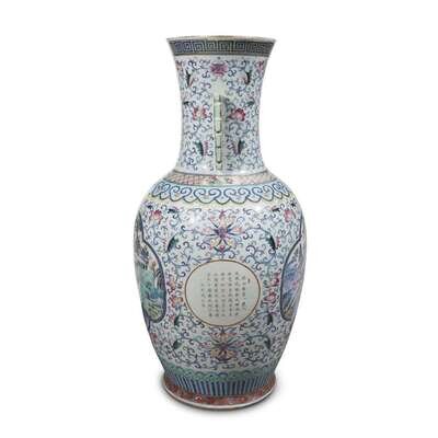 An impressive Chinese famille rose and doucai-decorated "Landscape and Calligraphy" vase qing dynasty, 19th century or earlier