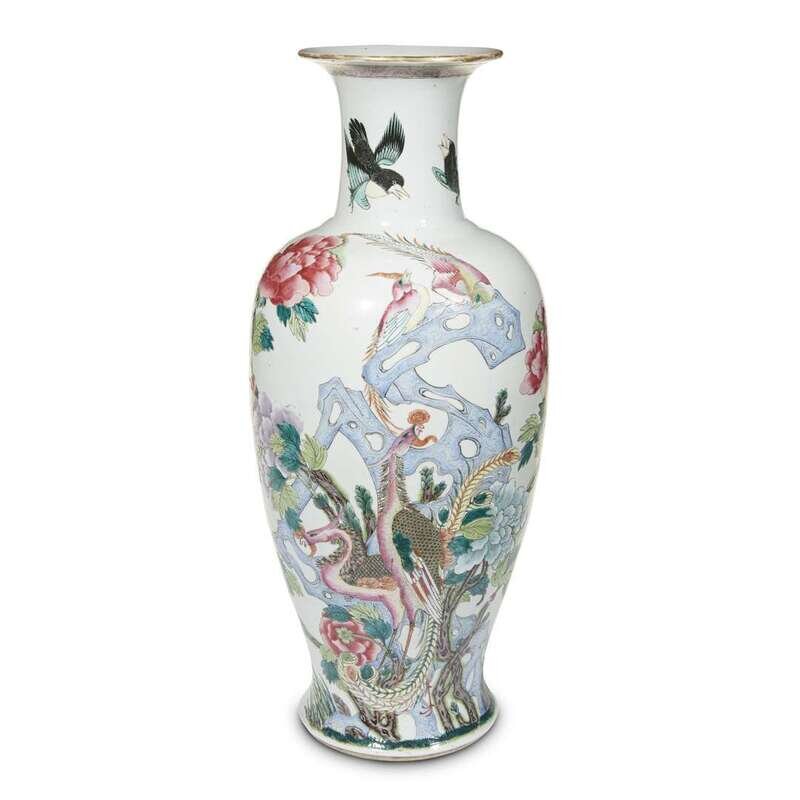 A large famille rose porcelain "Phoenix, Birds and Flowers" baluster vase qing dynasty, 19th century or earlier