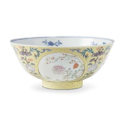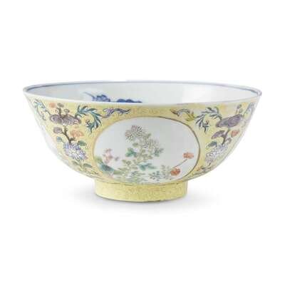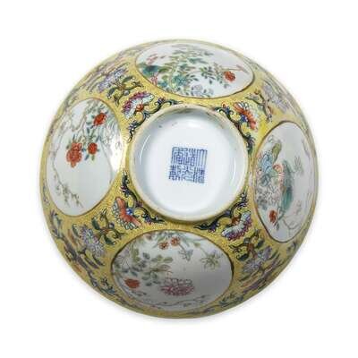 A Chinese yellow-ground "Medallion" bowl daoguang six-character seal mark, and probably of the period
