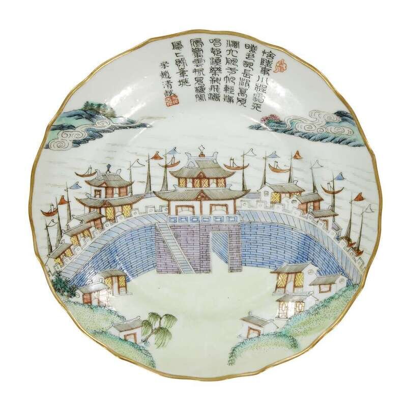 A Chinese enameled porcelain "Landscape" dish qing dynasty, possibly daoguang period
