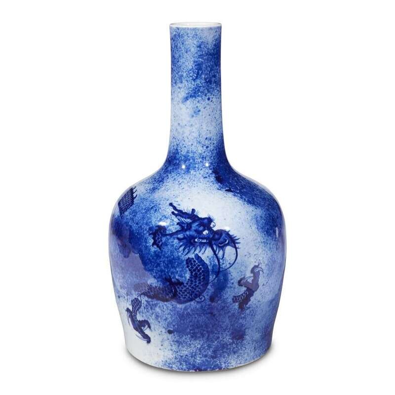 A Chinese blue and white "Dragon" bottle vase qing dynasty