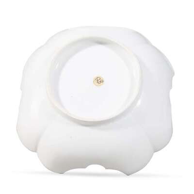 Finely-potted, the four-lobed bowl with shaped rim, depicting a blue and yellow dragon circling a flaming tama.
